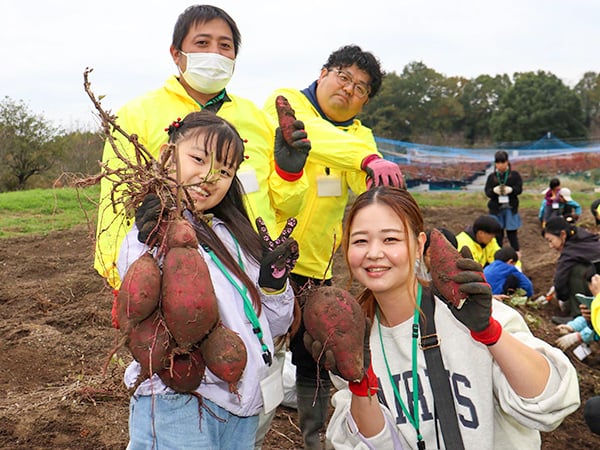 園児、小中学生、その保護者等を対象に、米、野菜、サツマイモ等の栽培および収穫体験を行い、農業や地域農産物の魅力を知り、食への興味の芽生えを促す食農教育を実施しました。(6,990人参加)